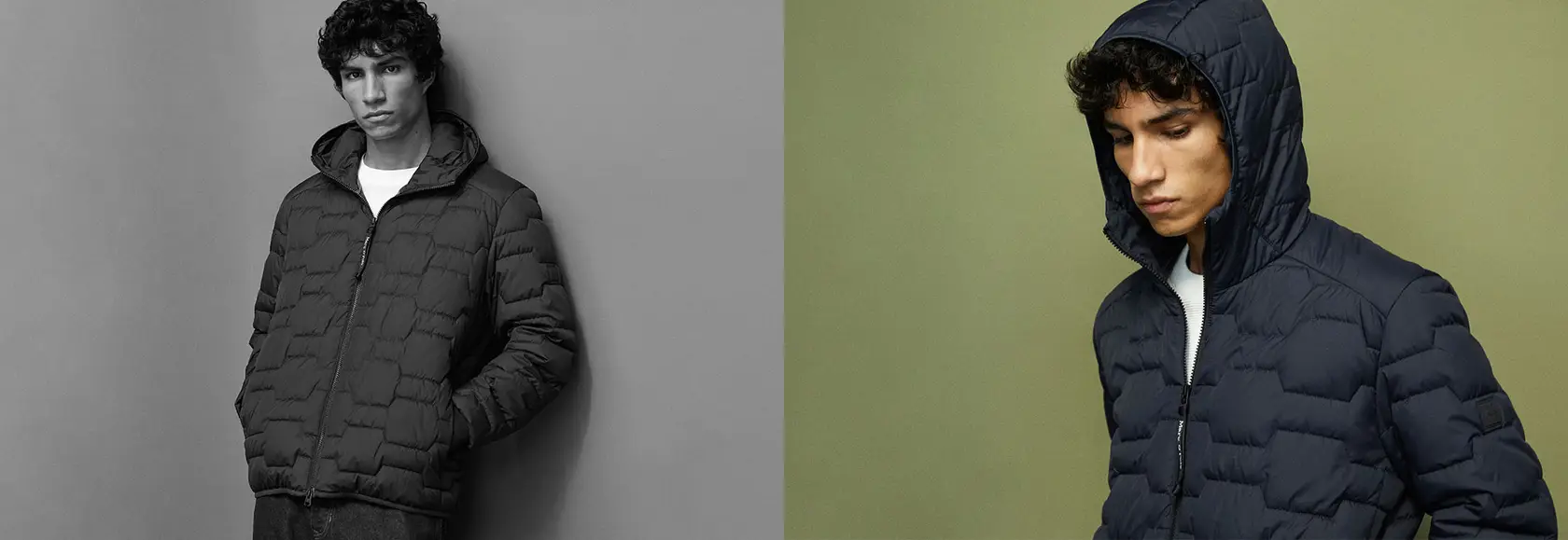 Noble premium look, resource-saving materials and practical features. The new quilted jacket is a real must-have of the season. The matte surface made of recycled performance polyester is water-repellent and quilted in an exciting octagon quilt pattern. The fixed hood and cuffs are wind-resistant. And the recycled material filling as an alternative to down feathers provides warmth and is super lightweight.
