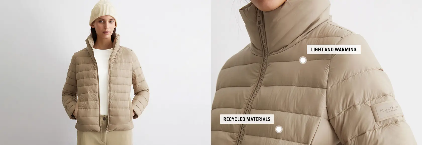 Inspired by the Scandinavian lifestyle, designed for modern everyday life: Our outerwear styles combine a clear design language with functional details and strong environmental awareness. Made from recycled materials, with innovative filling, a water-repellent surface or an adjustable fit. Easy to combine and the right model for every style - minimalist, well thought-out and typical Marc O'Polo.
