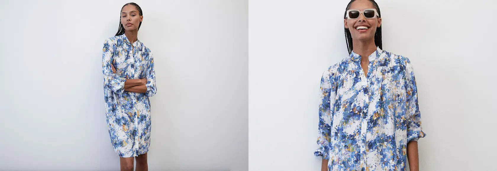 Haga el tiempo que haga, ¡nuestros nuevos estampados te garantizan un estilo alegre inconfundible! Descubre este vestido camisero de estilo femenino con estampado de flores confeccionado en una mezcla fluida de viscosa y cupro. ¡Queda ideal con unos botines desenfadados de piel! Nuestra nueva blusa amarilla de popelina con mangas voluminosas y estampados divertidos de flores te ofrece un estilo femenino y elegante cuando la combinas con pantalones blancos.