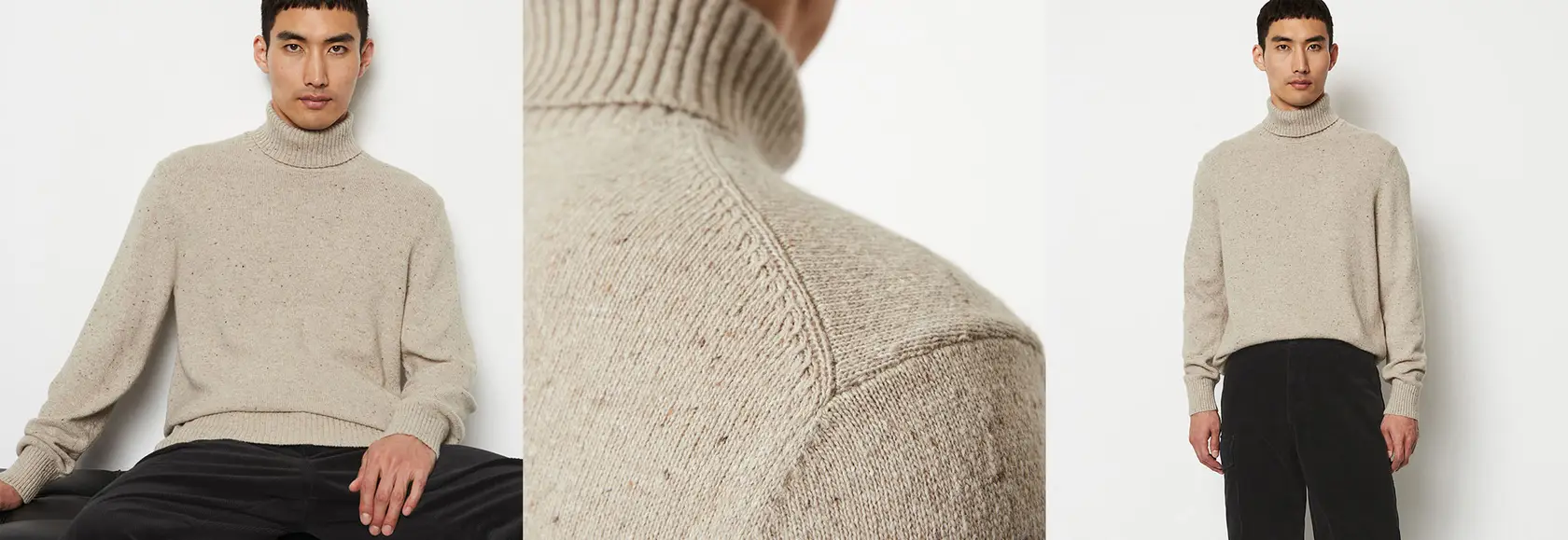 Ontdek onze eersteklas breigoed met tweed-look: elegante truien, vesten en accessoires gemaakt van een zachte, Italiaanse wolmix met gerecycled materiaal.Typisch tweed: de onregelmatig afgewisselde, contrastkleurige noppen. Hartig. Authentiek. Tijdloos.