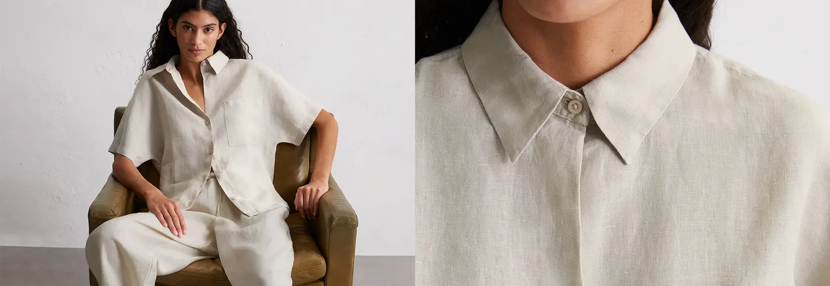 Stylowy letni niezbędnik o naturalnym charakterze: stylizacje wykonane z przewiewnego lnu łączą ponadczasowy design z luźnymi sylwetkami - spokojnymi, przejrzystymi i wygodnymi dla skóry. Nowoczesny wygląd z prostym kształtem i lekkością bez wysiłku.